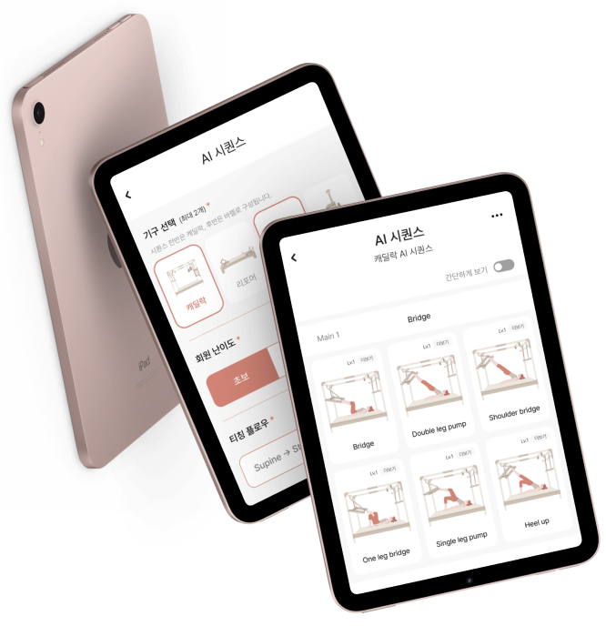수업에 필요한 시퀀스를5분만에 빠르고 간편하게1,000개 이상의 동작들이 기구별 포지션별로 나누어져 있어요.